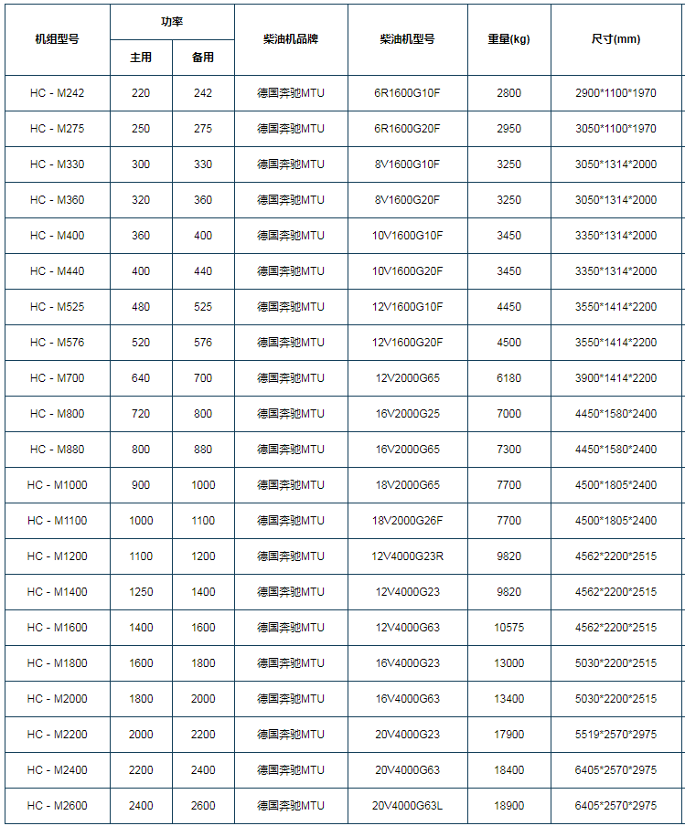 MTU系列环保型大功率机组,选用喻家户晓的德国戴姆勒·克莱斯勒(奔驰)MTU电子喷射柴油发动机来成套。MTU的历史可追溯到十八世纪机械化时代。而今,秉承***良传统的MTU始终以其无可比拟的***技术站在***发动机生产商的前列。 MTU发动机的***良品质与凯华提出的可靠、技术***、性能、环保和长使用寿命的理念完全吻合。